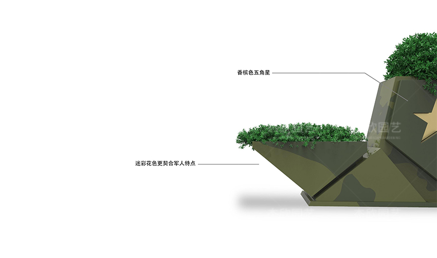 軍人花箱整體元素取自軍人五角星,