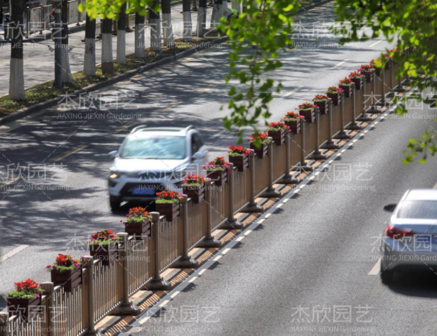貼合場景的氣質,思索人與自然的關系,運用花箱提升城市道路景觀的和諧統(tǒng)一。在現(xiàn)代生態(tài)新城的理念下,設計出符合自然、符合集約、符合現(xiàn)代的道路景觀——以節(jié)點效果美化風景。