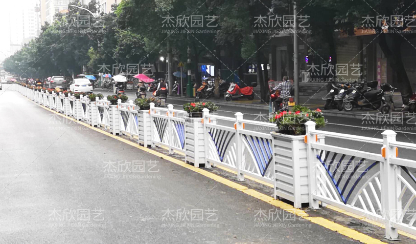 可以根據(jù)場(chǎng)地實(shí)際選擇。道路較寬的,可以選擇護(hù)欄和花箱一列式。道路較窄的,可以選擇護(hù)欄和花箱是上下式的。