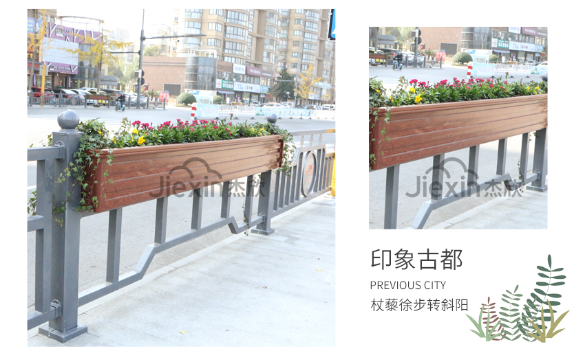 這款花箱護欄在設計元素中添加了地方特色,古老的寶塔凸顯出城市的文化底蘊。