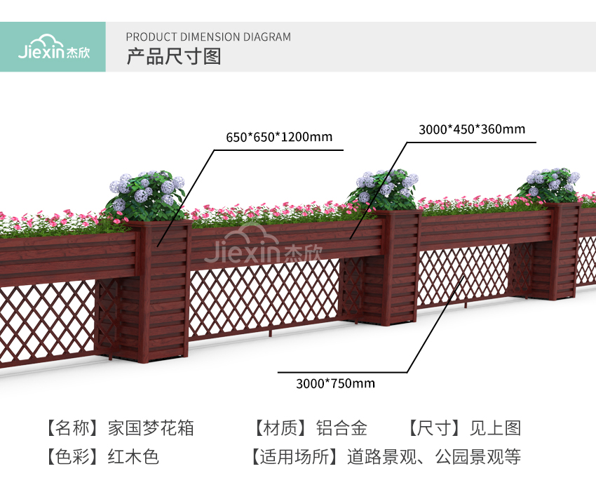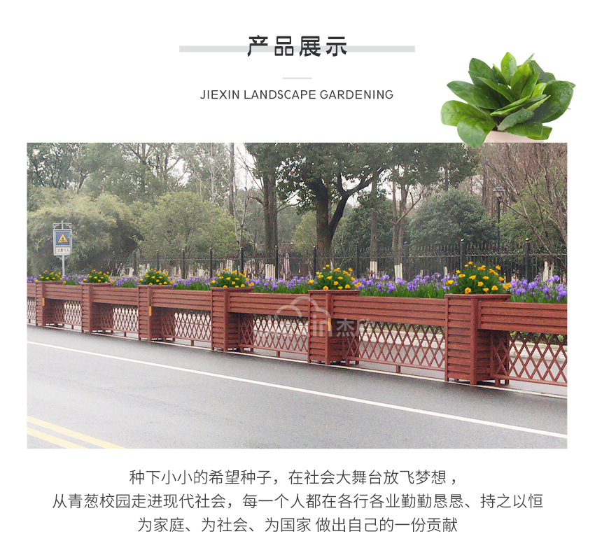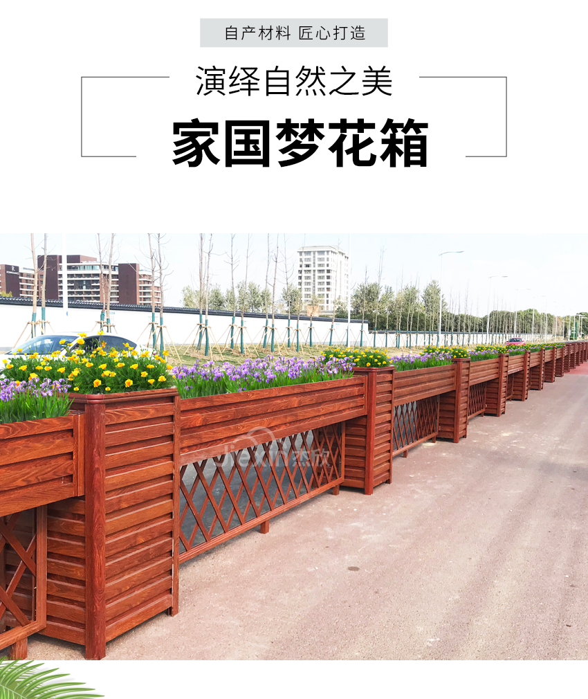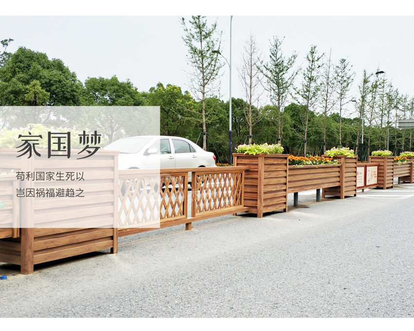 黃檀木色花箱護(hù)欄,能夠適用城市街道的景觀。