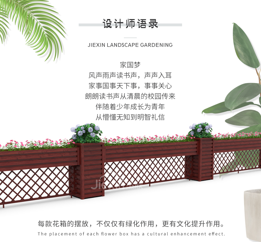 黃檀木色花箱護(hù)欄給人自然又親切的感覺,擁有自然和人文的兩種屬性。