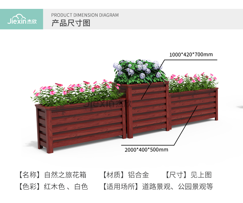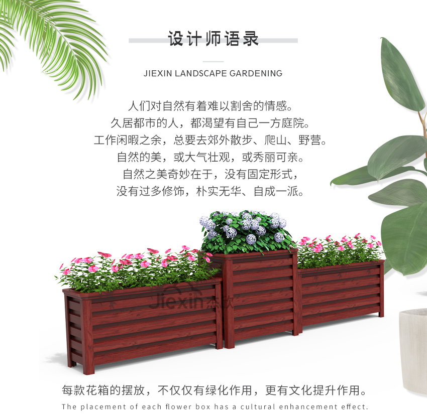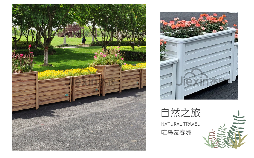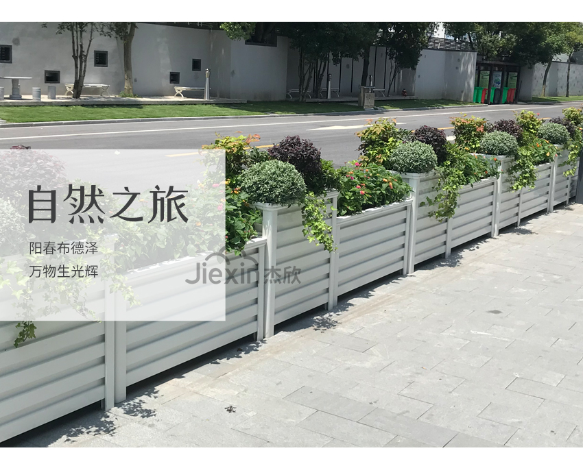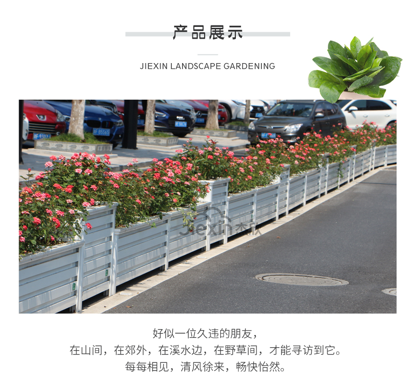 花箱組合搭配草花,能夠營造美麗豐富的道路景觀效果。