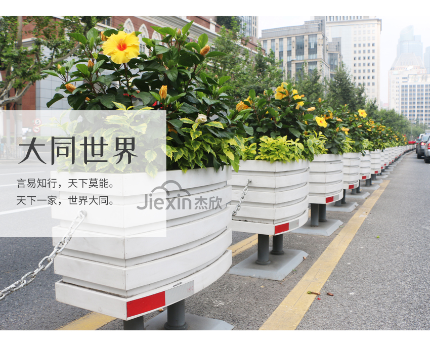 造型簡約的PVC花箱,在道路上也是一道優(yōu)美的風(fēng)景線