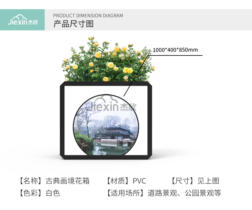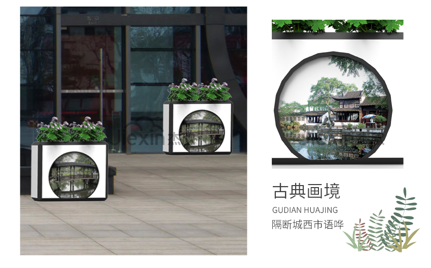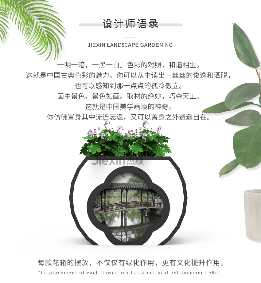 這一款花箱設(shè)計(jì)元素來源于蘇州園林