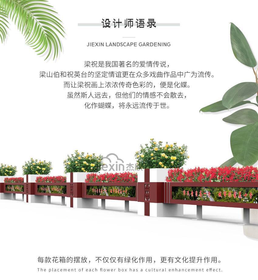 蝶紋設(shè)計元素的隔離花箱也不多見,而且可以和城市宣傳畫結(jié)合,顯得古典雅致。
