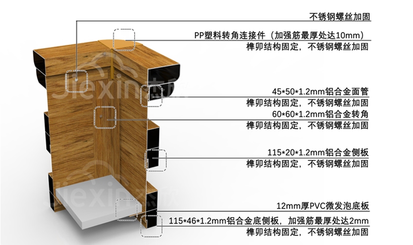二、觀察花箱結(jié)構(gòu)。我們注意哪里呢?注意面管、轉(zhuǎn)角、側(cè)板、立柱四個地方。主要觀察它們連接是否牢固。它們之間的連接方式以榫卯結(jié)構(gòu)和螺絲固定為主。需要注意卡槽是否緊密貼合,螺絲固定是否牢固。如果卡槽貼合緊密,螺絲固定牢固,那么花箱結(jié)構(gòu)就很穩(wěn)定。