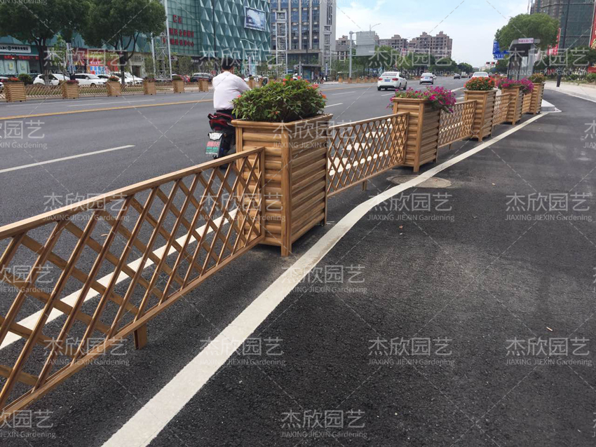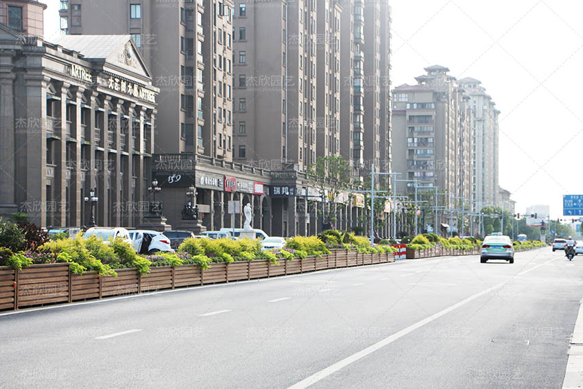 城市街道上的花箱隔斷,一般選取組合花箱或單個(gè)花箱形式。