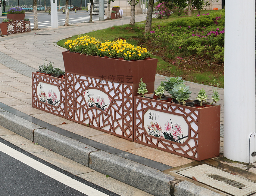 組合花箱在街道中是比較容易選擇的,相對其他的綠化,它的效果非常突出明顯的。