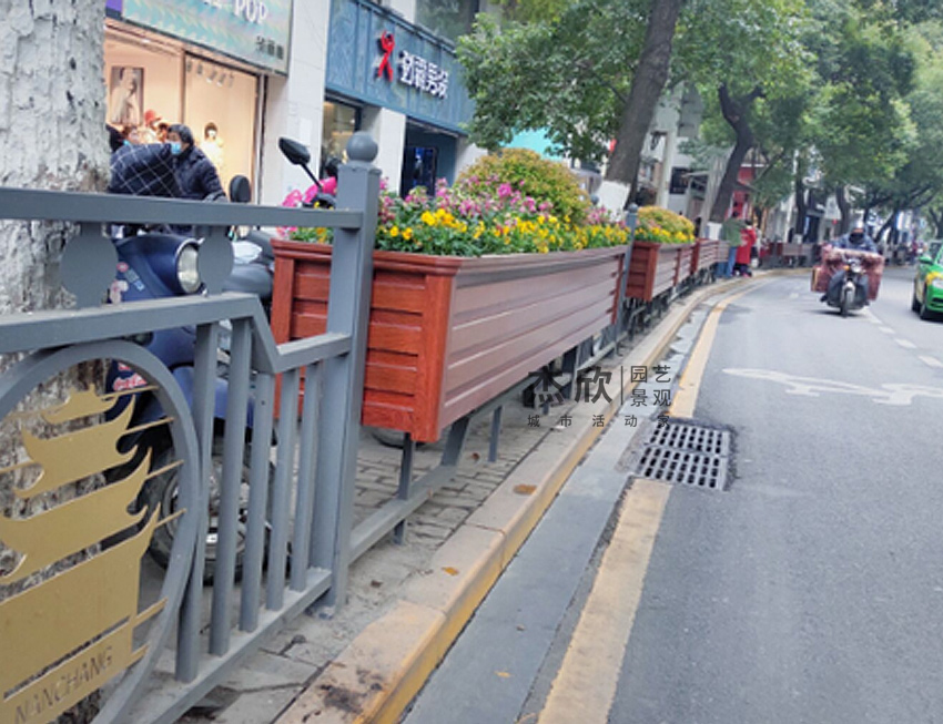 城市道路是城市中一道濃墨重彩的風(fēng)景。人們對城市道路景觀的探索從未停止。南昌中山路上過去使用的是懸掛式花箱、防腐木花箱,隨著城市基建的發(fā)展以及城市景觀需求的提升,道路需要更加堅固、美觀、富有文化感的花箱。此次南昌中山路改造工程用到的正是杰欣生產(chǎn)的花箱護(hù)欄,實地定制、材質(zhì)可靠、精細(xì)生產(chǎn)特性,使得杰欣贏得了市政單位的信任。