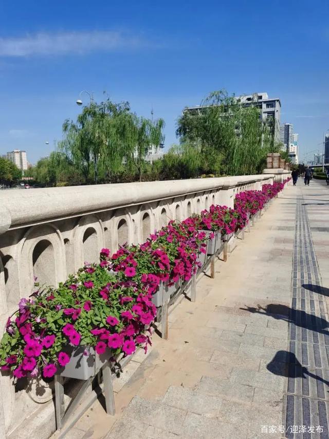 綠化隊在建設路高架橋(朝陽街至南內(nèi)環(huán)街段)的中間隔離欄新建了立體花箱,栽植大花月季2000余株,同時安裝了先進的滴灌系統(tǒng)、排水系統(tǒng);在沿南沙河的建設路橋、青年路橋、新建路橋、雙塔西街橋等七座橋上安裝了鋼架結構的花架及花箱1000余個,栽植矮牽牛,增添道路色彩,提升群眾的出行環(huán)境。
