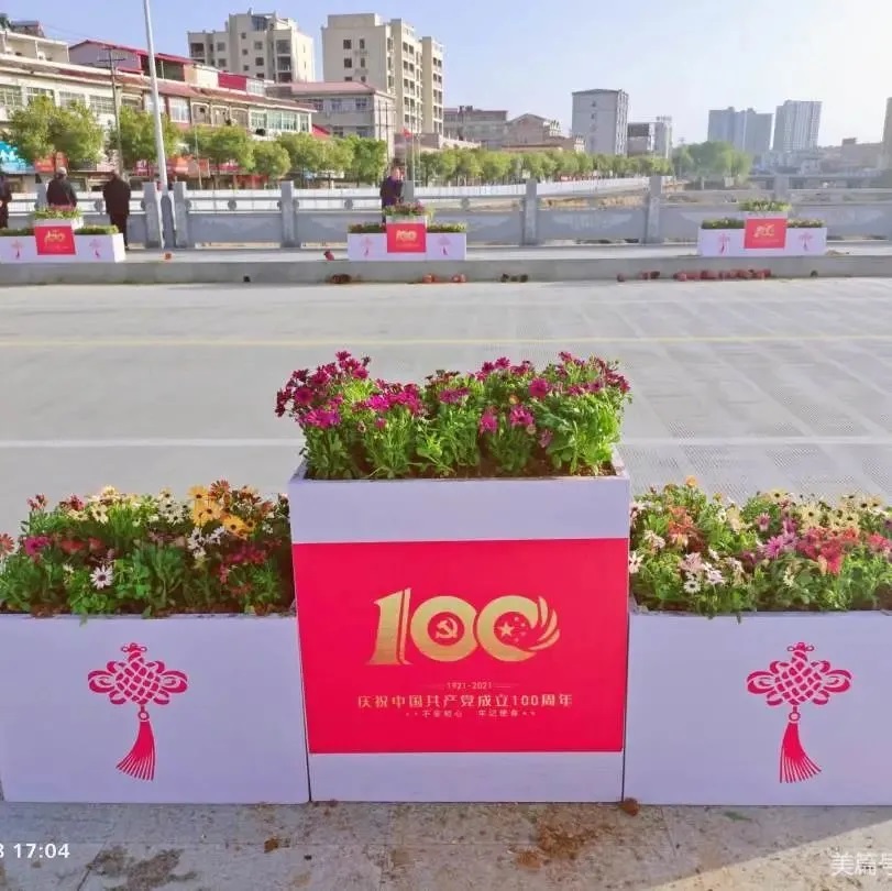 昌盛橋兩面共計(jì)擺放32組立體式組合花箱,每組花箱長(zhǎng)達(dá)2.1米,擺放間距4.2米。箱體外側(cè)以“慶祝中國(guó)共產(chǎn)黨成立100周年”為主題進(jìn)行設(shè)計(jì),為建黨100周年?duì)I造熱烈喜慶氛圍。