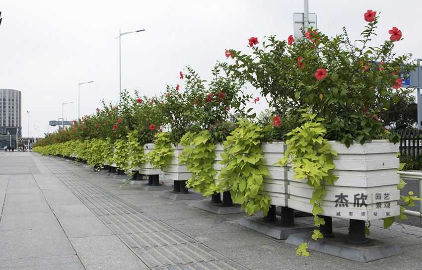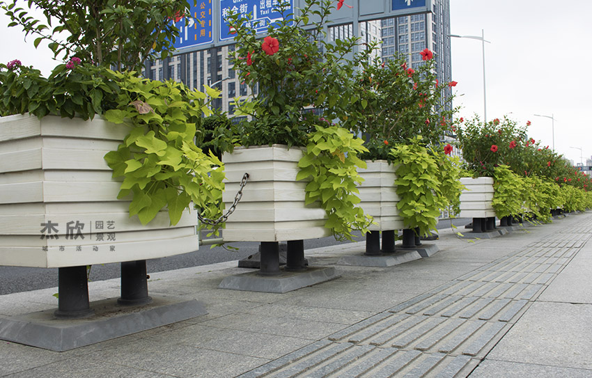 PVC一桶一鏈花箱造型簡約時尚,給道路風景帶來一絲柔美。