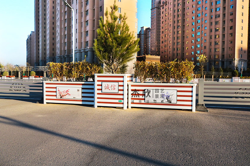 這款鋁合金護(hù)欄花箱采用的是組合花箱和鋁合金。組合花箱是梅蘭竹菊的貼畫,形式豐富,意蘊(yùn)深長。