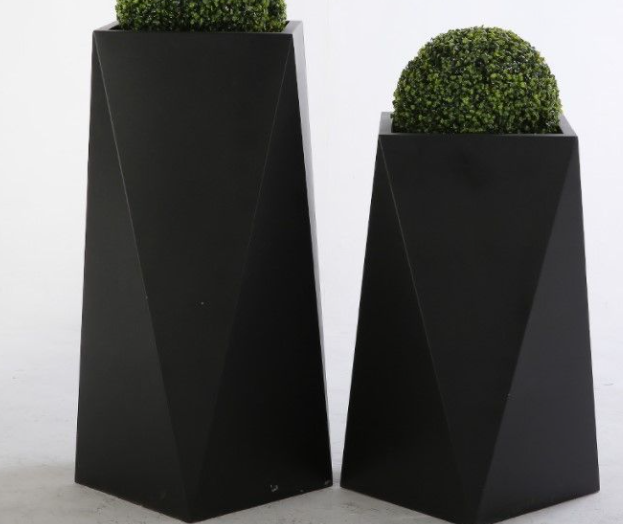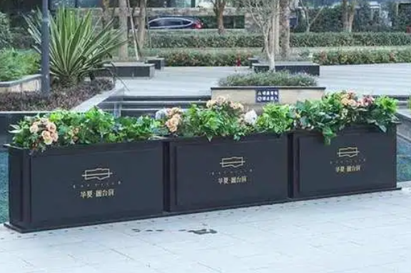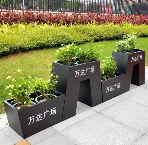 還有這些黑色異形花箱,也是不銹鋼板花箱