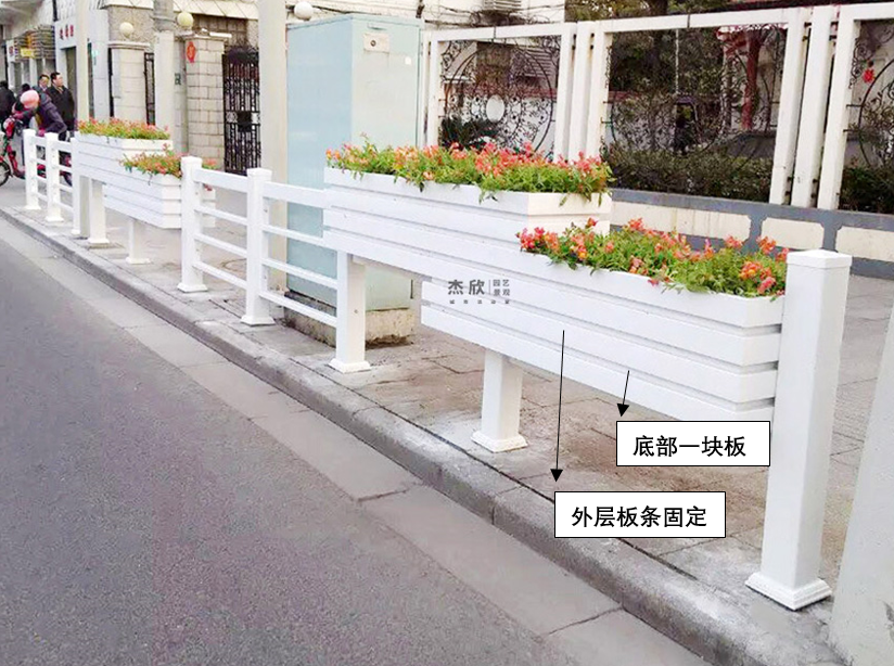 首先是道路隔離花箱護欄中的PVC材質,PVC是由板條拼接而成,一般來說,大家看到的常規(guī)PVC花箱,都是板條固定要一個板上,因此側面看有凹凸面,凸出來的就是板條固定上去。