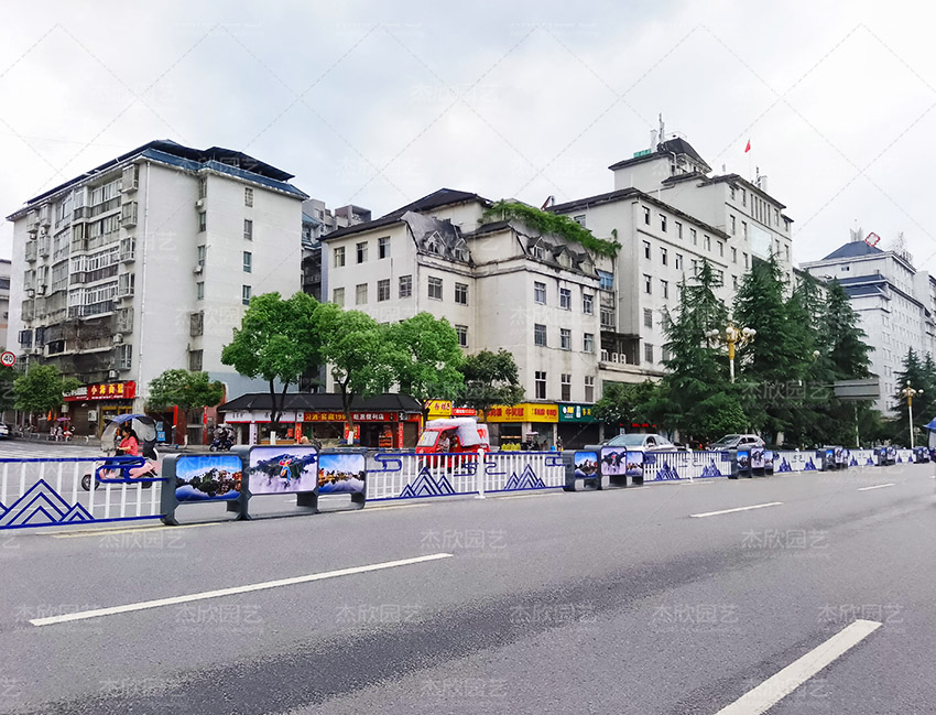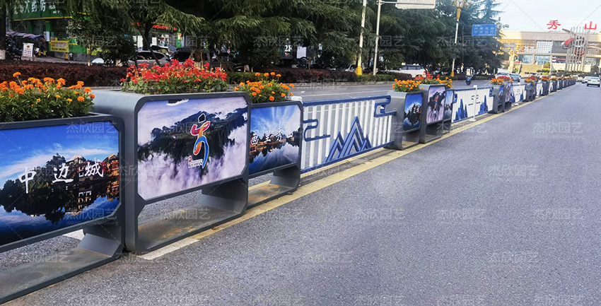 護欄部分采用山川設計,如詩如畫,宛若其中。花箱和護欄材質采用的鍍鋅,耐曬堅實、防腐耐用,是一款實用與美觀的花箱護欄。