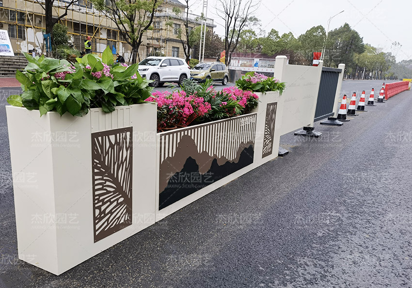 鈑金花箱將城市文化詩意融入花箱設(shè)計中,與城市同頻共振,為城市添色加彩。