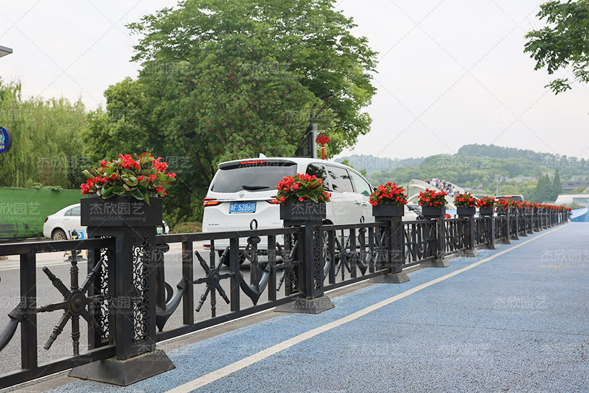 湖岸之心花箱護(hù)欄的設(shè)置,便于景區(qū)交通管理,為游客營造有序的出行體驗(yàn),同時(shí)美化場景,提升場景的景觀性。