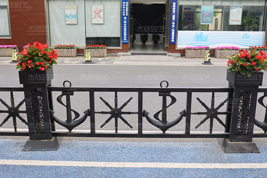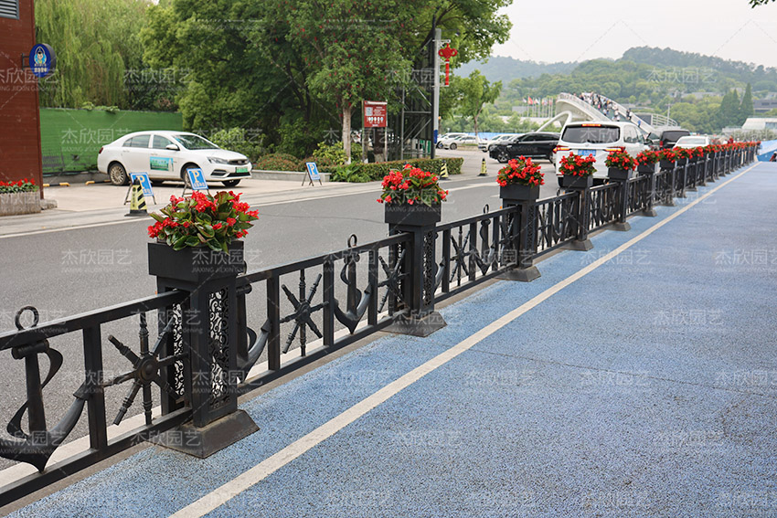 道路隔離護(hù)欄便于景區(qū)管理,優(yōu)化出行,草花布置,有利于提升場景的美觀度。