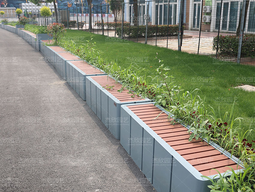 景觀小品集花箱與坐凳于一體,營(yíng)造綠色生態(tài)效果,塑造休閑自然的氛圍。