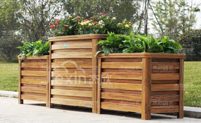 黃檀木色花箱,與綠植,周邊場(chǎng)景融合