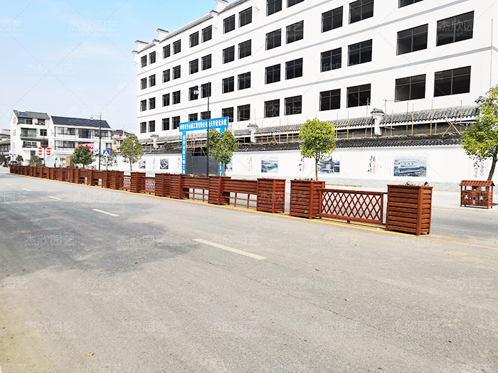 花箱護(hù)欄的美觀性比鋅鋼護(hù)欄高很多。首先花箱的顏色和街景十分融合,木紋色給道路增添了自然清新的感覺(jué)。花箱護(hù)欄中有網(wǎng)格元素的融入,舒緩了視覺(jué),增添了道路的觀賞性。