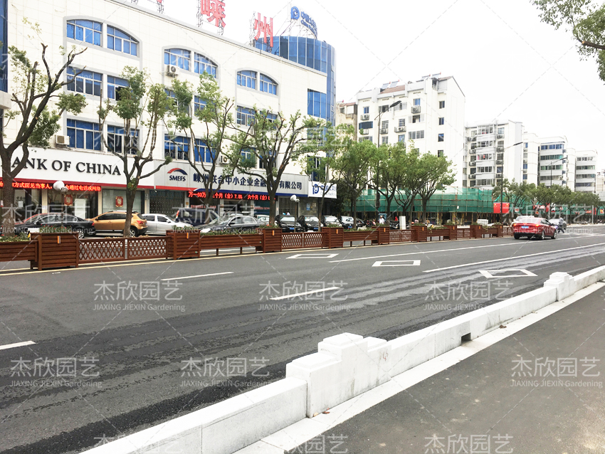 景觀效果:紅木色花箱,和環(huán)境相融合,自然清新,給道路增添魅力。