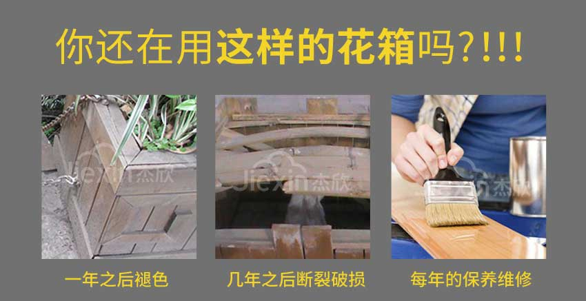 防腐木花箱使用壽命1—3年,比較短,室外容易腐爛發(fā)霉變質(zhì),防撞性差,已經(jīng)漸漸被市場淘汰;
