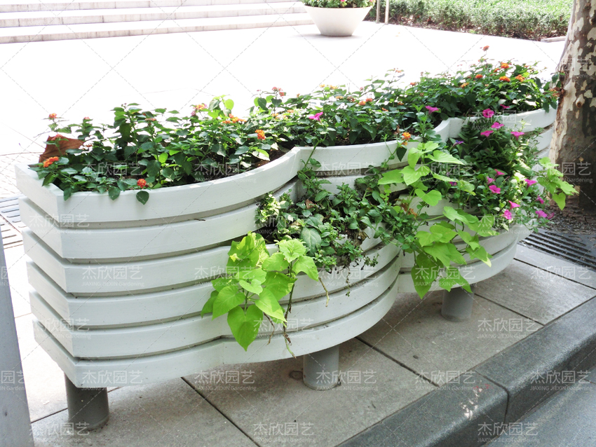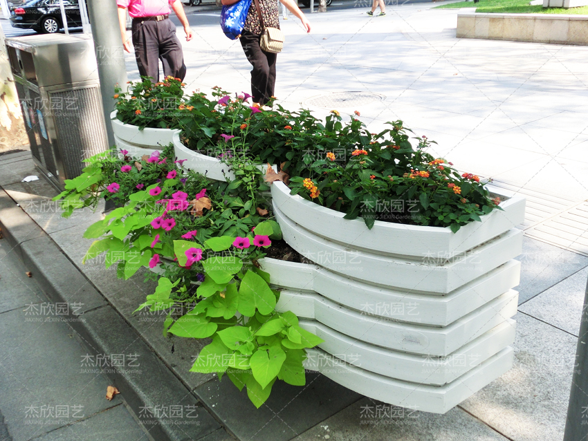藝術(shù)花箱能夠展示出街道的美景。弧形花箱有很強(qiáng)的造型感,白色的花箱外觀,搭配綠植和花卉都很好看!還能有垂墜的視覺感!給行人帶來如沐春風(fēng)的感覺。