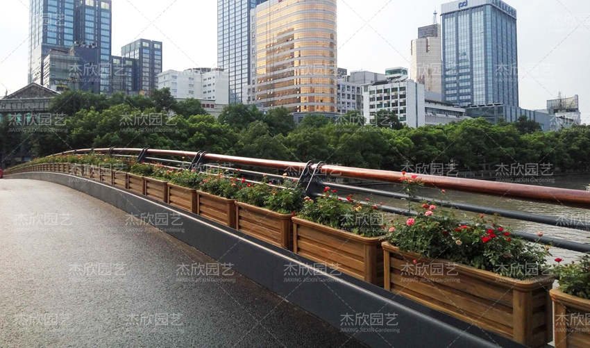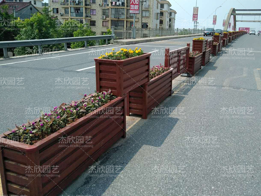 橋梁中央隔離花箱主要為了隔離車(chē)道,同樣采用鋁合金材質(zhì),高強(qiáng)度防撞,紅木色花箱搭配綠植,景觀(guān)效果好。