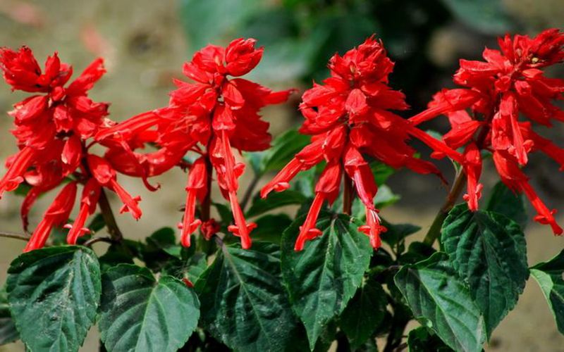 一串紅,又稱爆仗紅、象牙紅,為唇形科鼠尾草屬形植物。花序修長(zhǎng),色紅鮮艷,花期又長(zhǎng),適應(yīng)性強(qiáng),為中國(guó)城市和園林中最普遍栽培的草本花卉。