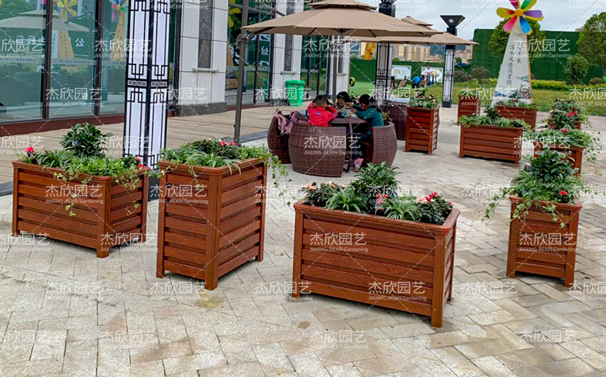 怎樣才能保有這一份舒適的環(huán)境?花箱起到的作用正是這樣。花卉正是大自然組成的部分,美麗的花卉帶給人的就是自然的清新感受。花卉的載體花箱也很關鍵,盡量能貼合自然環(huán)境的意境。如圖這幾組花箱就很好體現(xiàn)了自然環(huán)境的特色。首先是自然的顏色,大自然的顏色多大地色,花箱的紅木色貼合大地色,和環(huán)境搭配和諧。這款花箱還有木紋色,真的是和大自然非常協(xié)調(diào)。