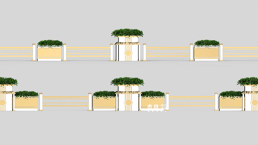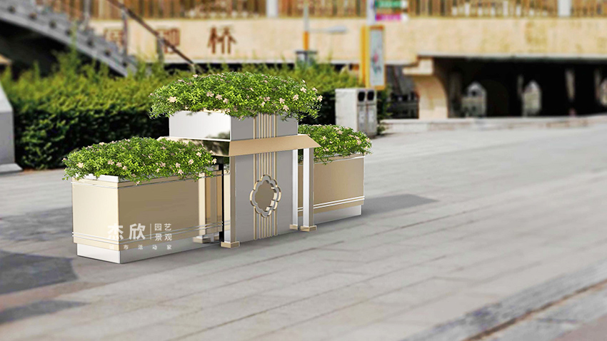 東方記憶花箱,將傳統(tǒng)建筑融入到城市花箱。花箱作為載體,反映城市精神面貌。首都北京,歷經(jīng)滄桑,也包含歲月沉淀,令全國人民心馳神往。花箱主體部分是取北京方正的建筑,融入了現(xiàn)代的審美,在色彩上著以暗金、白金,呈現(xiàn)出低調(diào)、沉穩(wěn)的氣質(zhì)。
