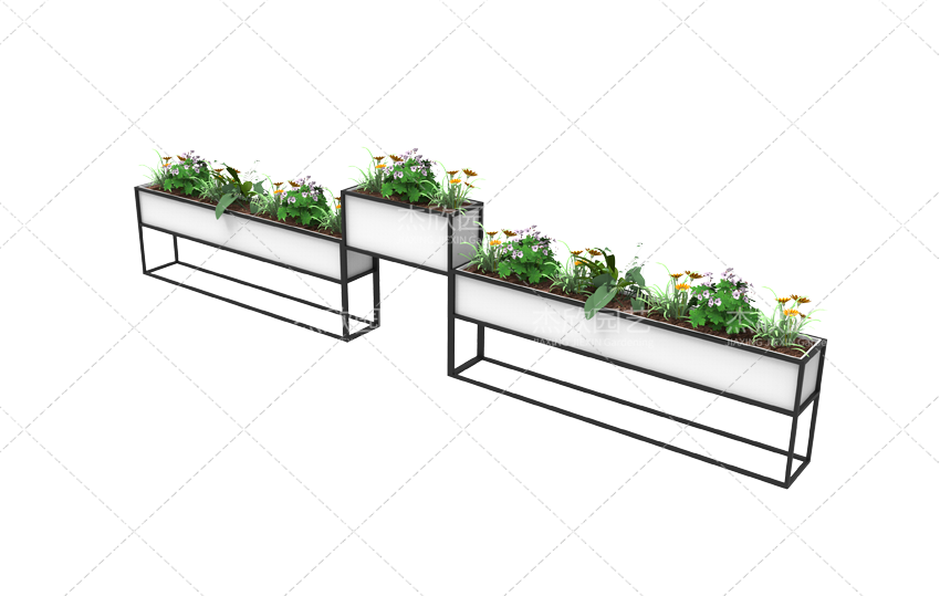 第一款,這款現(xiàn)代花箱白色外觀,黑色鐵架,有著現(xiàn)代風(fēng)格的簡便,也有一絲輕盈,充滿了藝術(shù)效果。