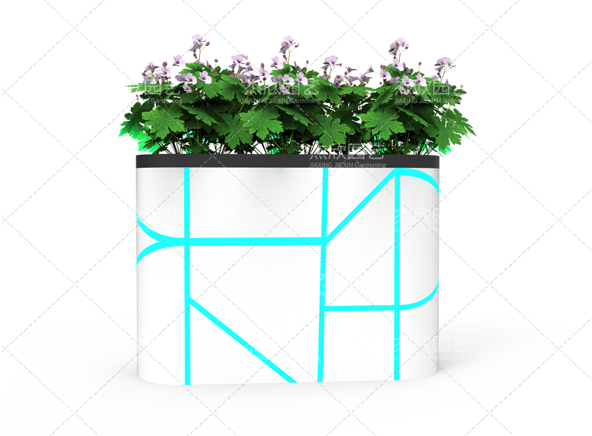 第二款,這款現(xiàn)代花箱第一眼看上去就充滿了科技感,用充滿現(xiàn)代科技藍色,簡潔的線條,完成了對科技感的闡釋。