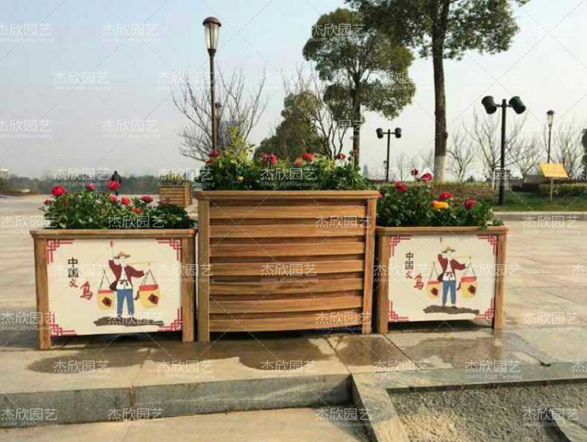 公園名貴樹種邊,可以擺放花箱,起到隔離作用。也可以起到美化作用。