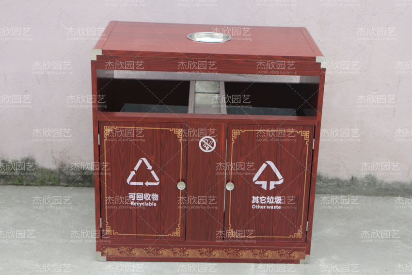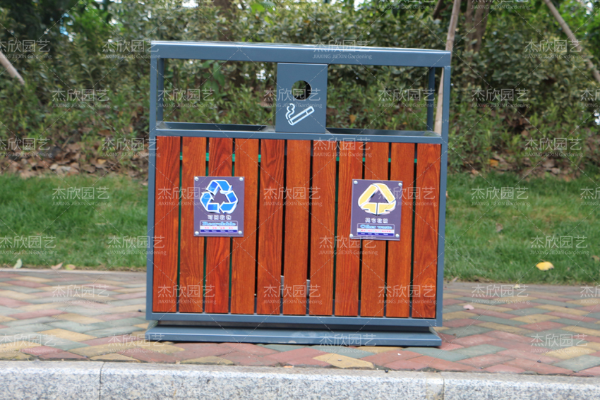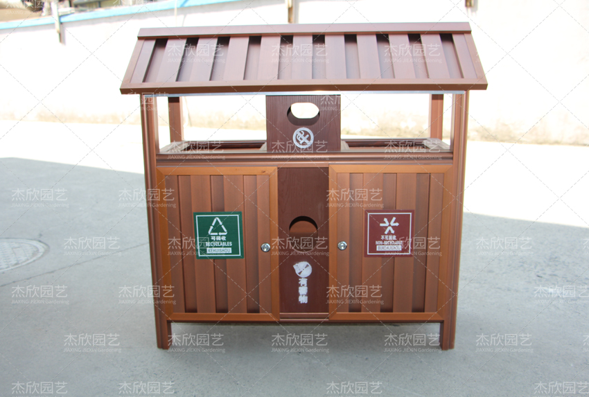 鋁合金垃圾桶在外觀上,不比防腐木垃圾桶效果差,款式也很多。